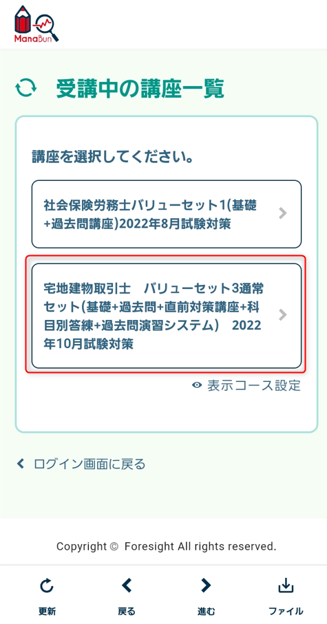 https://manabun.foresight.jp/ - ログイン画面が表示されるため、ログインを行います。