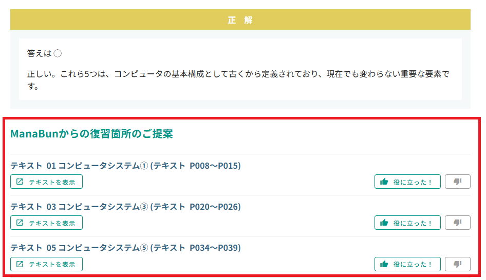 - 問題文に基づき、AIが関連性の高いテキストを最大3つまで自動的に提案します。