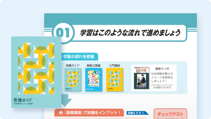 「入門講座」では社労士試験の各科目ごとに「どんなことを勉強すれば良いか」の全体像を確認し資格マンガ「真中進」で社労士のイメージを掴むことができます。