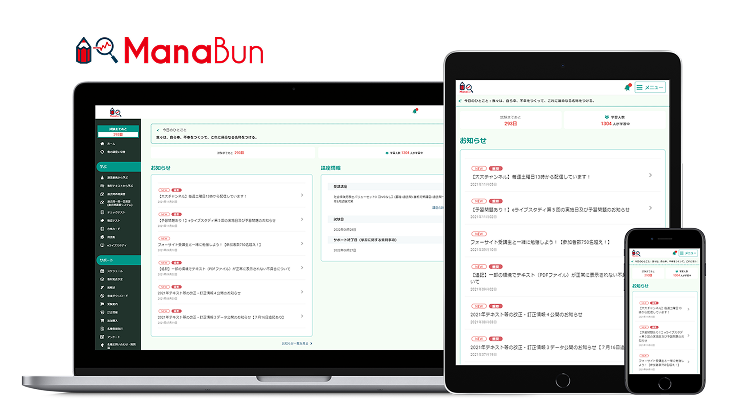 eラーニング「ManaBun」で過去問演習と弱点克服をシステムがサポートし、アウトプット中心の学習サイクルを強化します 。間違えた問題を自動で記録し、最適なタイミングで再出題してくれるため、効率的に弱点を克服できます。